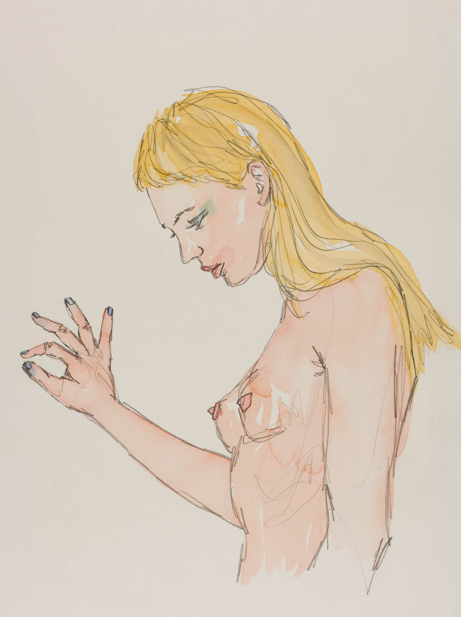Aquarellierte Zeichnung auf Papier, 300 g/m²